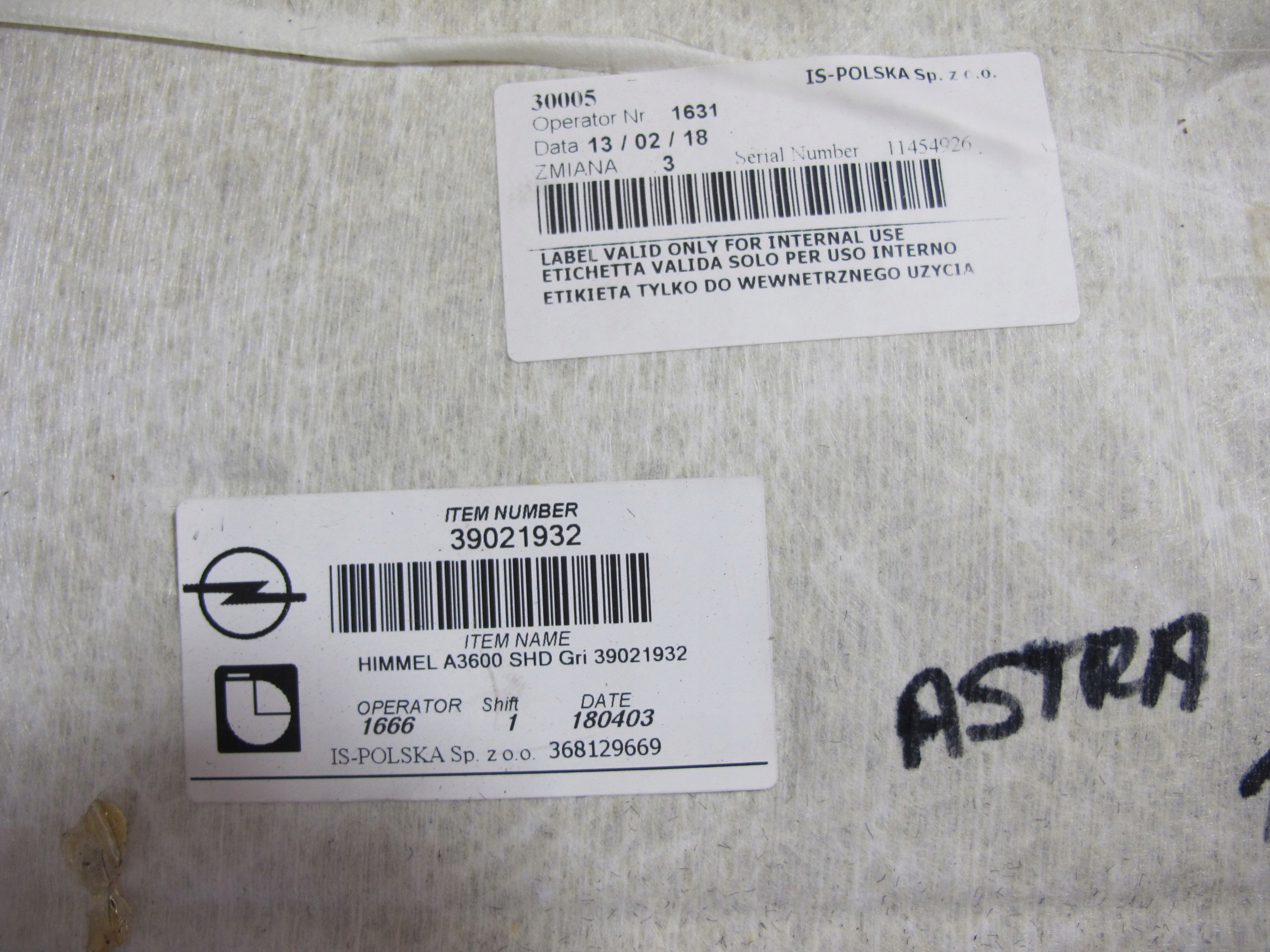 | Каталожный номер детали: | 39021932, ASTRA |