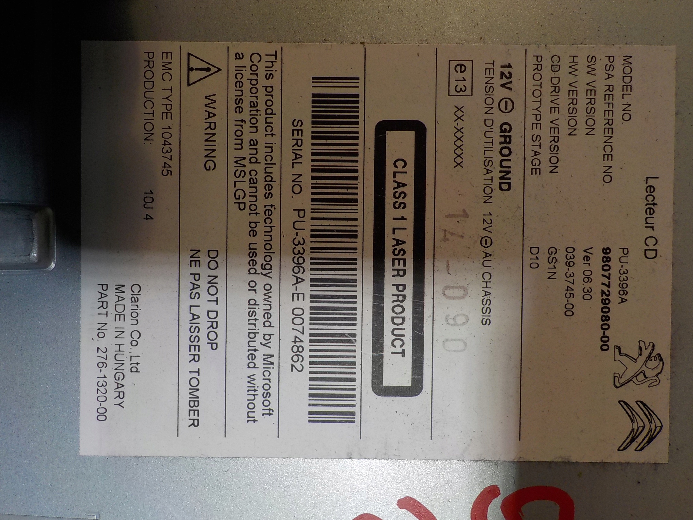Peugeot 508 радио считыватель cd 9807729080