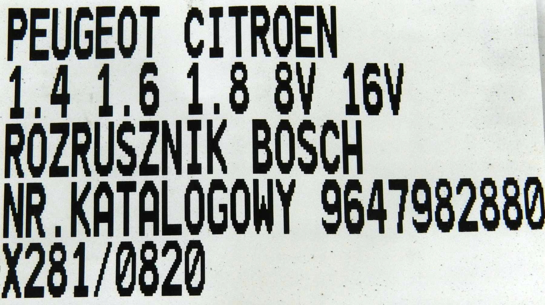 Каталожный номер детали: 9647982880, ROZRUSZNIK, BOSCH, CITROEN, PEUGEOT, 9647982880