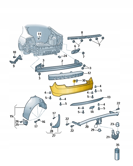 Бампер задний skoda rapid оригинальный номер 5jh807421b
