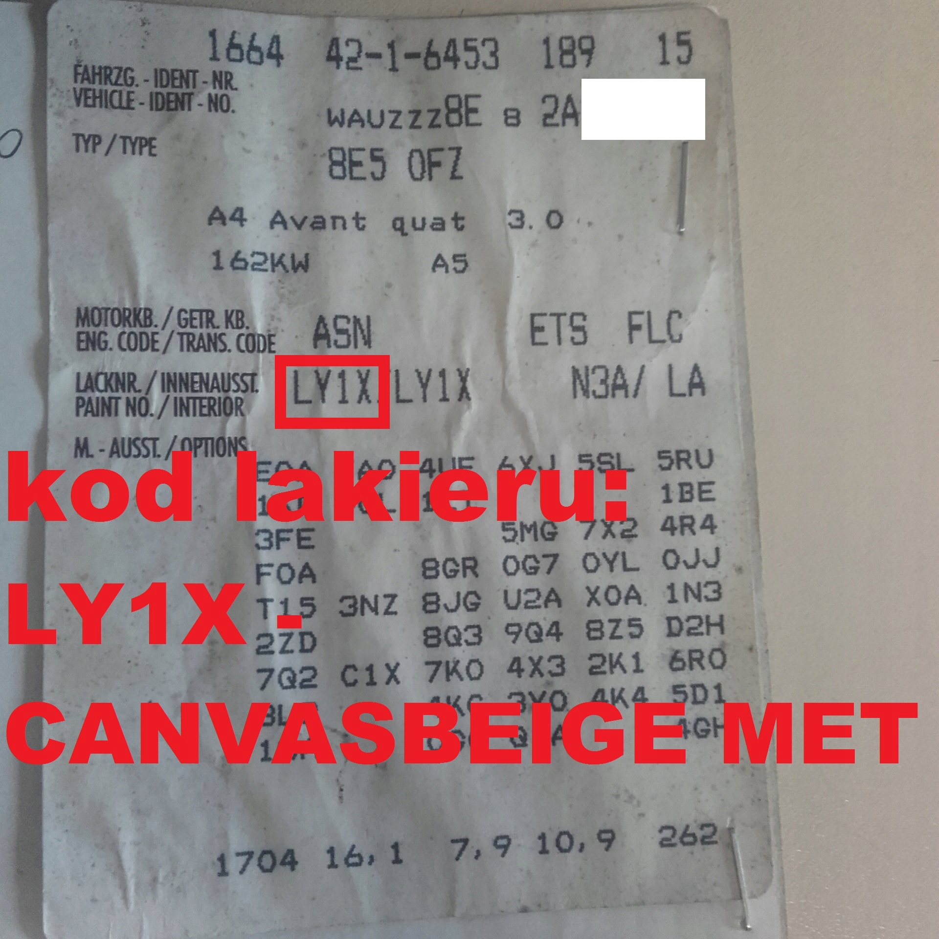 | Каталожный номер детали: | ZAWIASY, KLAPY, TYŁ, BAGAŻNIKA, LY1X, AUDI, A4, B6, KOMBI |