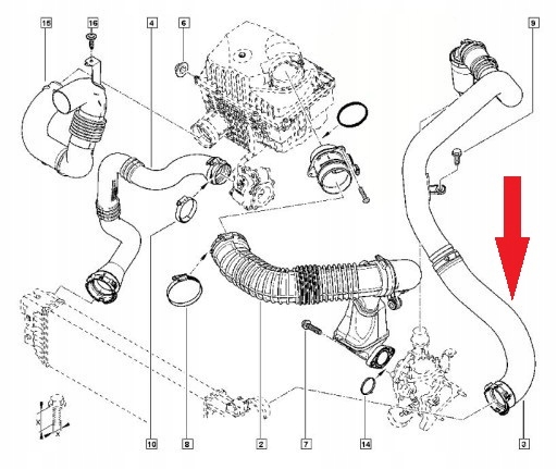 Шланг труба пабтрубок интеркулер renault master 2.3 оригинальный номер 8200730589, 95519172 недорого
