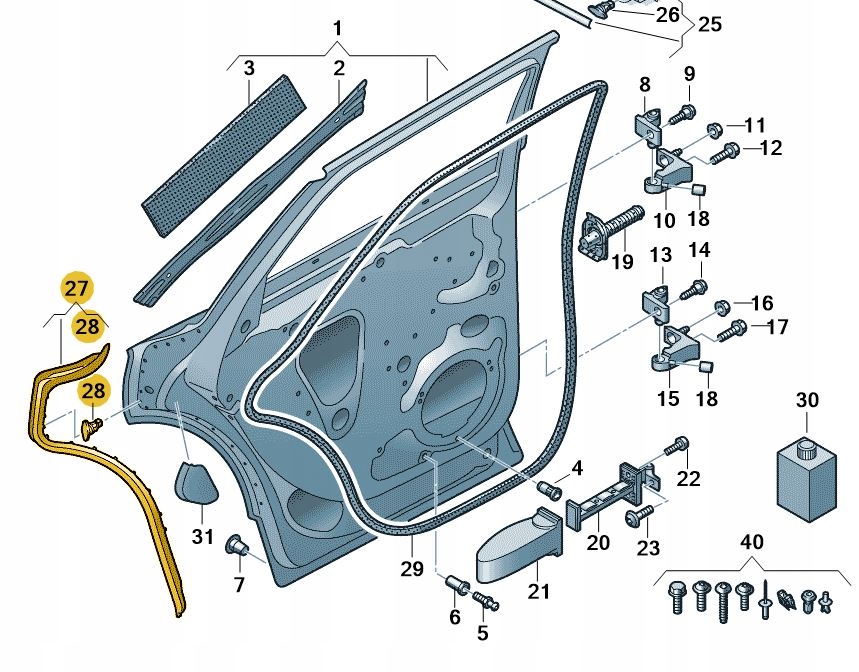 Прокладка дверь наружная задняя левая audi q5 оригинал od aso