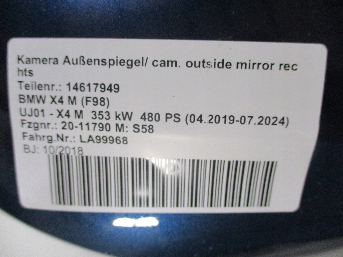 | Каталожный номер детали: | Lusterko, BMW, X4, F98, M, KAMERA, PRAWE |