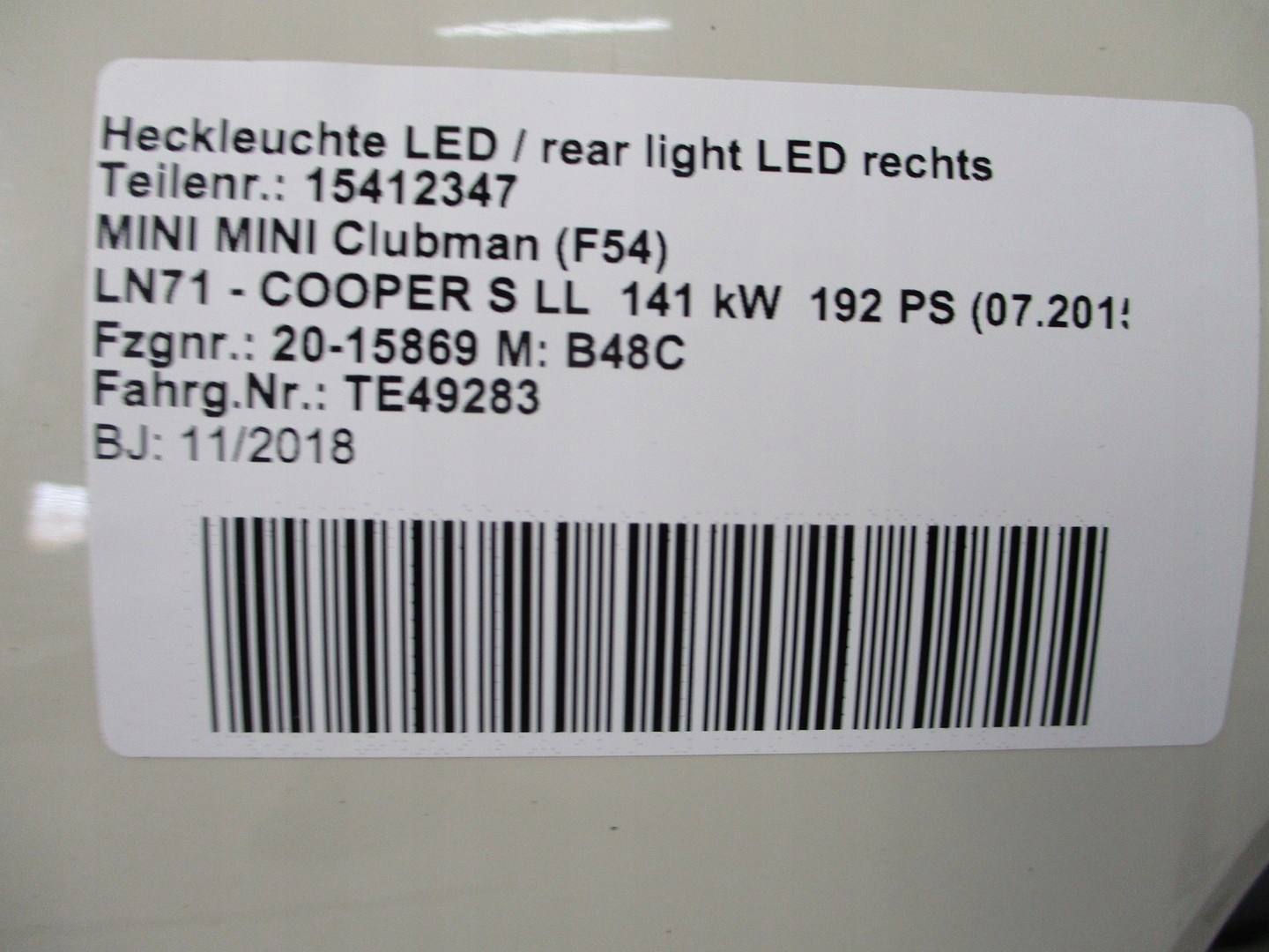 | Каталожный номер детали: | Klapa tylna MINI F54 CLUBMAN 18R 850 PEPPER WHITE |