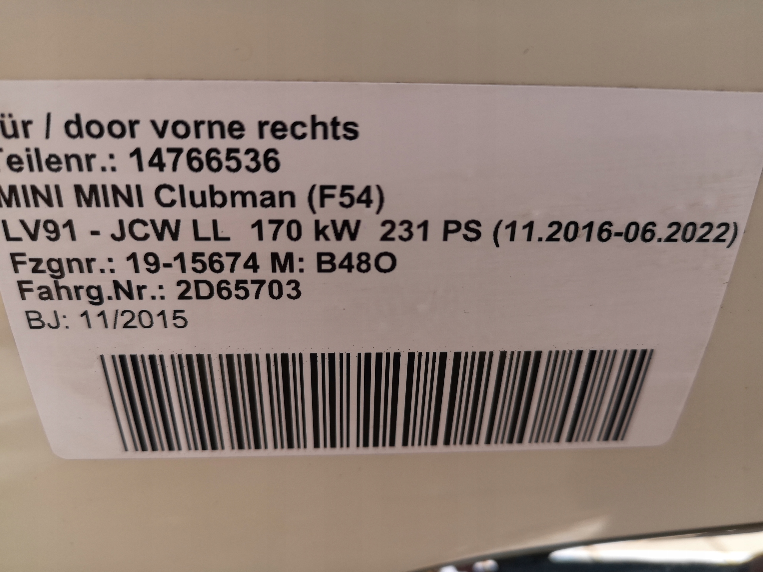 Двері перед правий лівий mini clubman f54 850 pepper