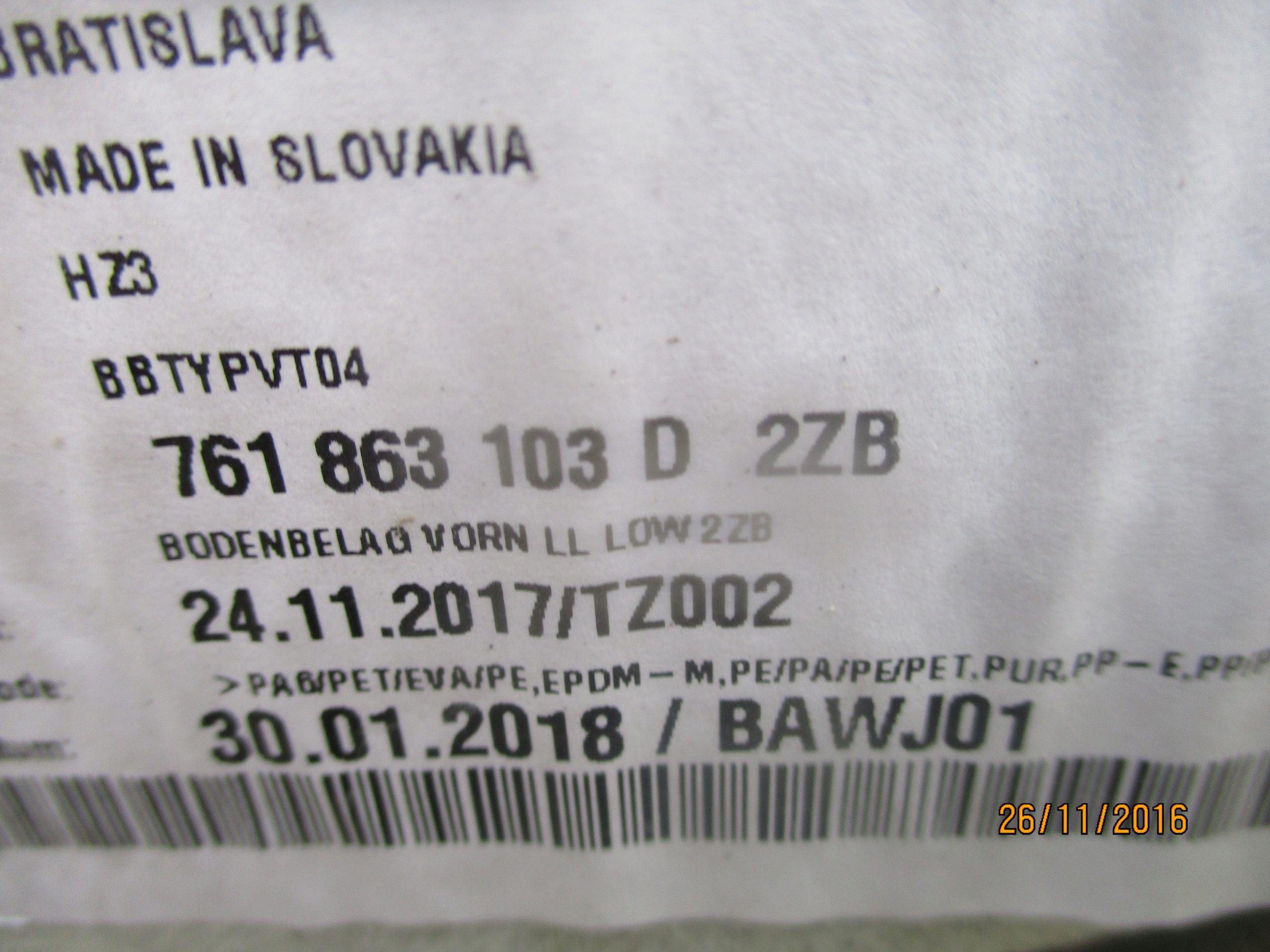 Обшивка килимок 761863103d vw touareg iii