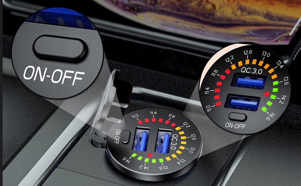 Зарядний пристрій автомобіль 2x usb qc3.0 woltomierz 3a
