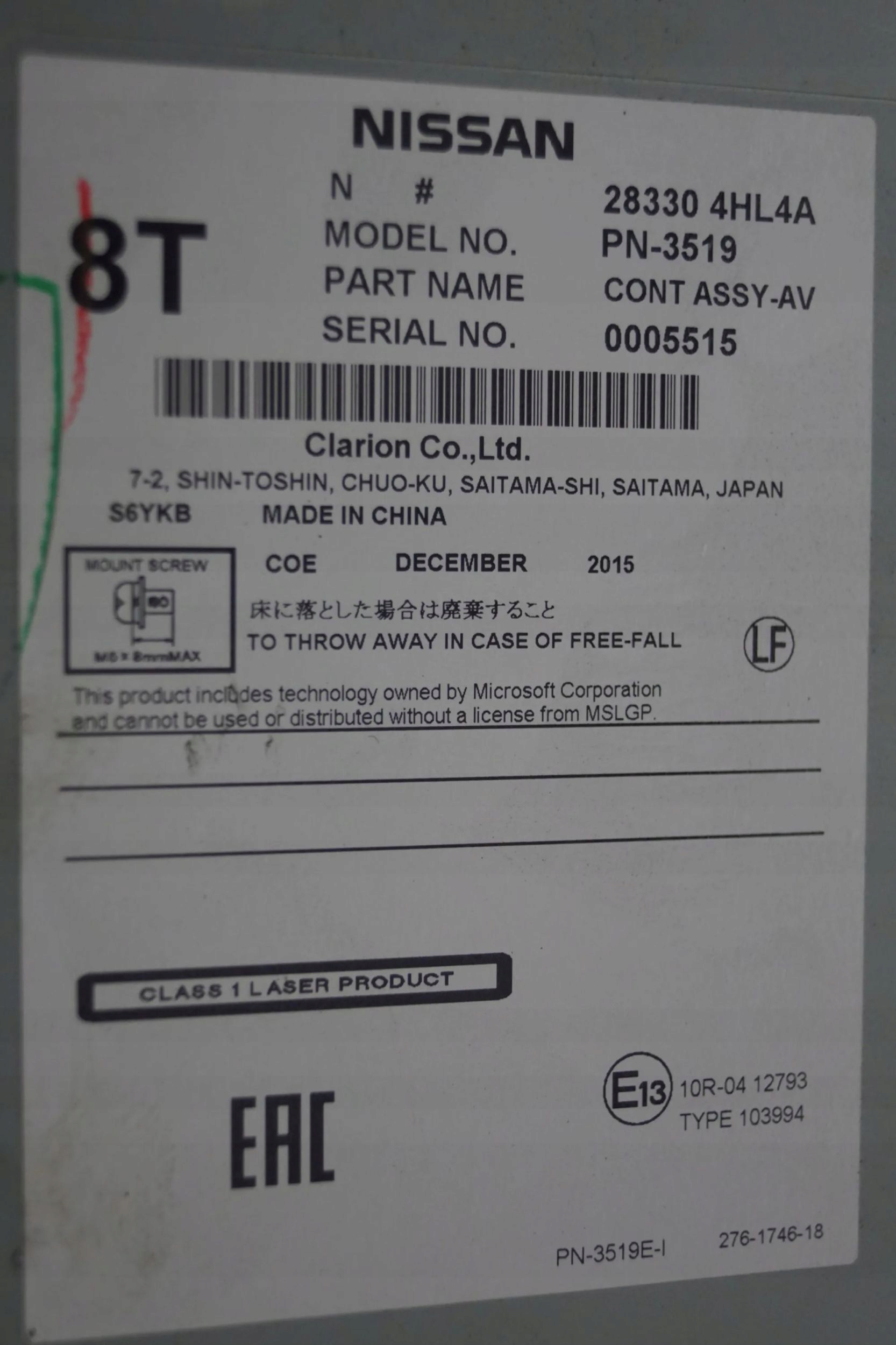 | Каталожний номер деталі: | 283304HL4A |