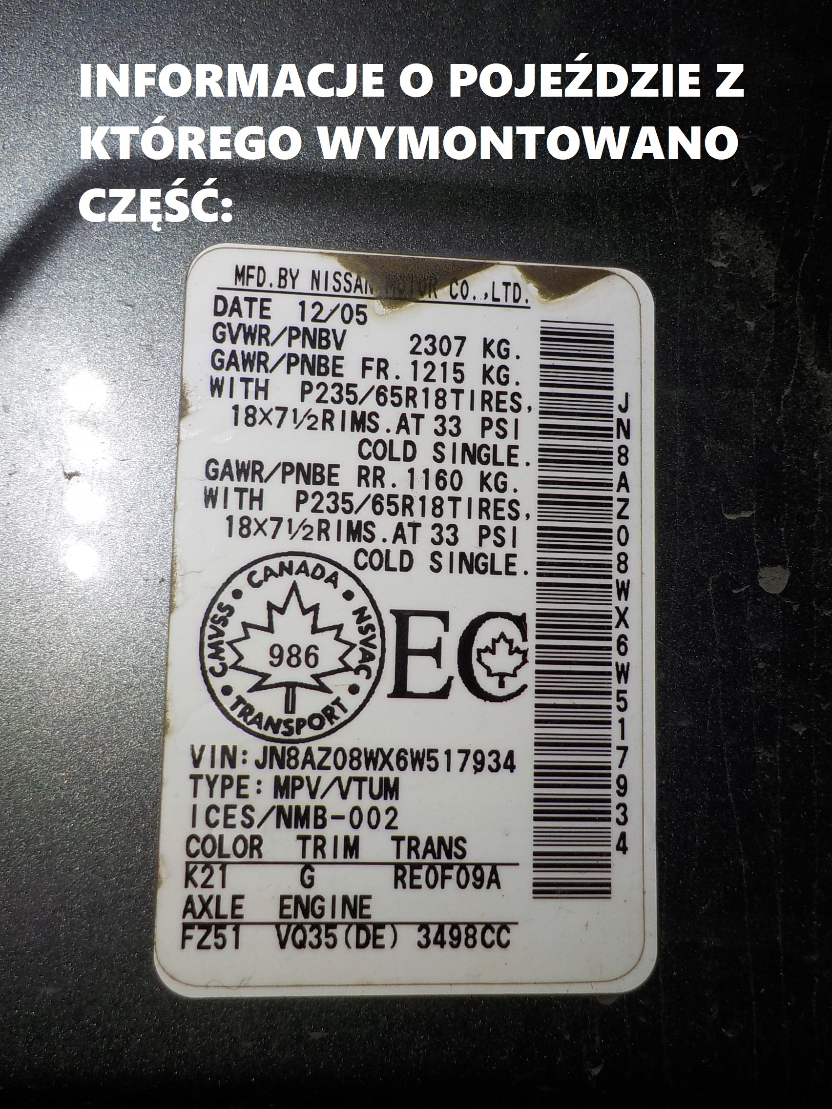 | Якість частини відповідно з gvo: | o - оригінал з logo виробник транспортного засобу оригінальний номер |