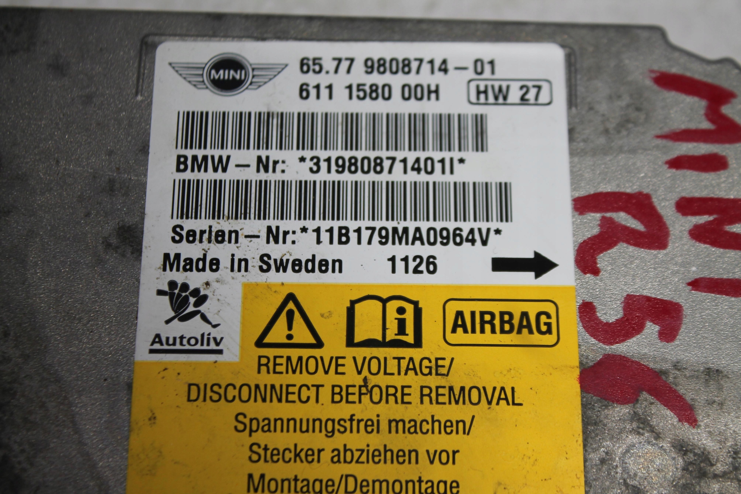 Модуль датчик подушка безпеки 9808714 mini r56 r57 r60 08-13