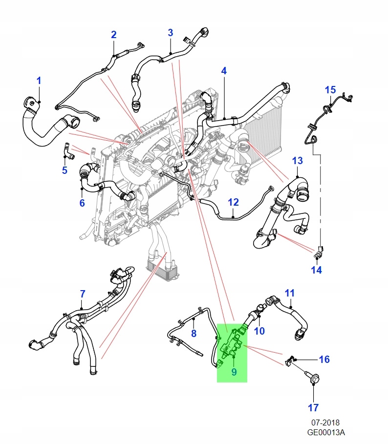 Патрубок клапан радіатора jaguar xe xf f-pace 2.o