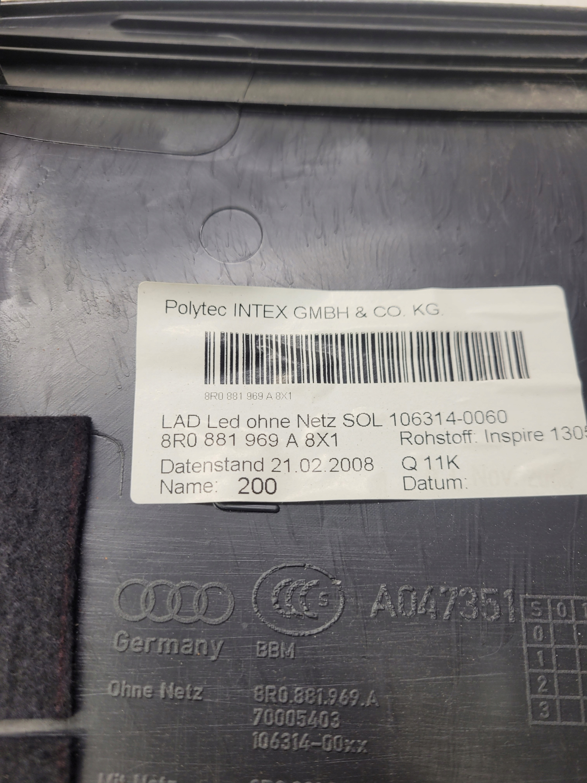 | Каталожний номер деталі: | 8R0881969A |