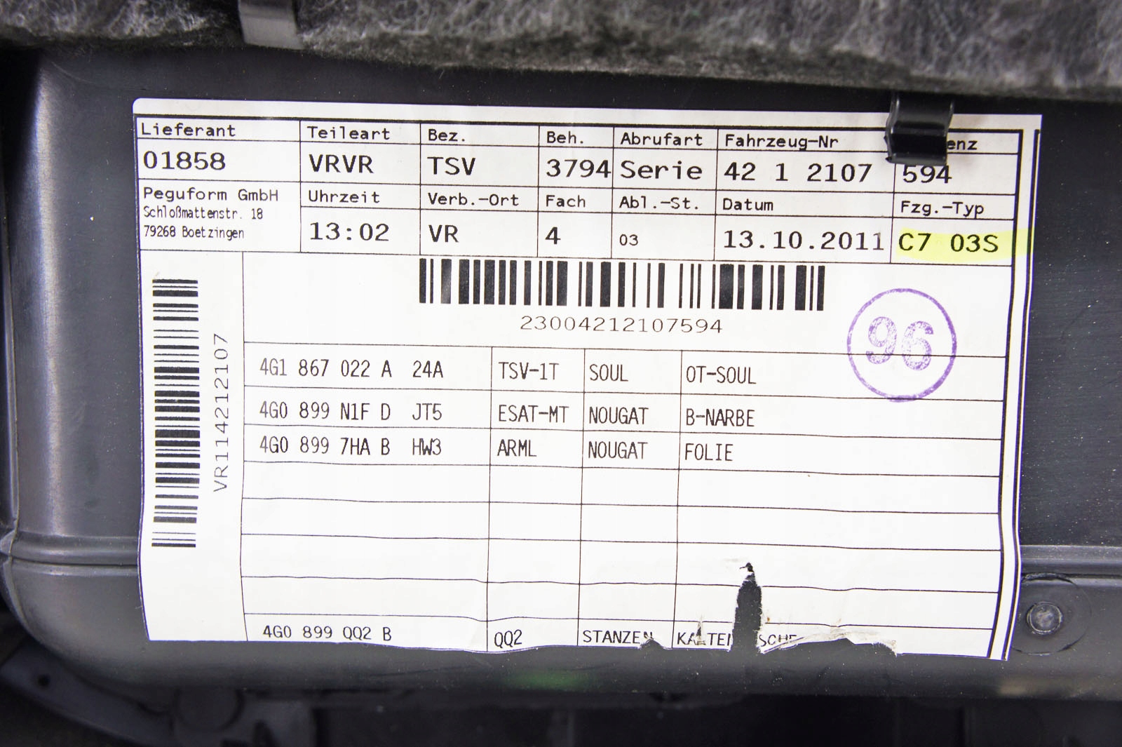 Kw121 audi a6 c7 обшивка двері правий перед