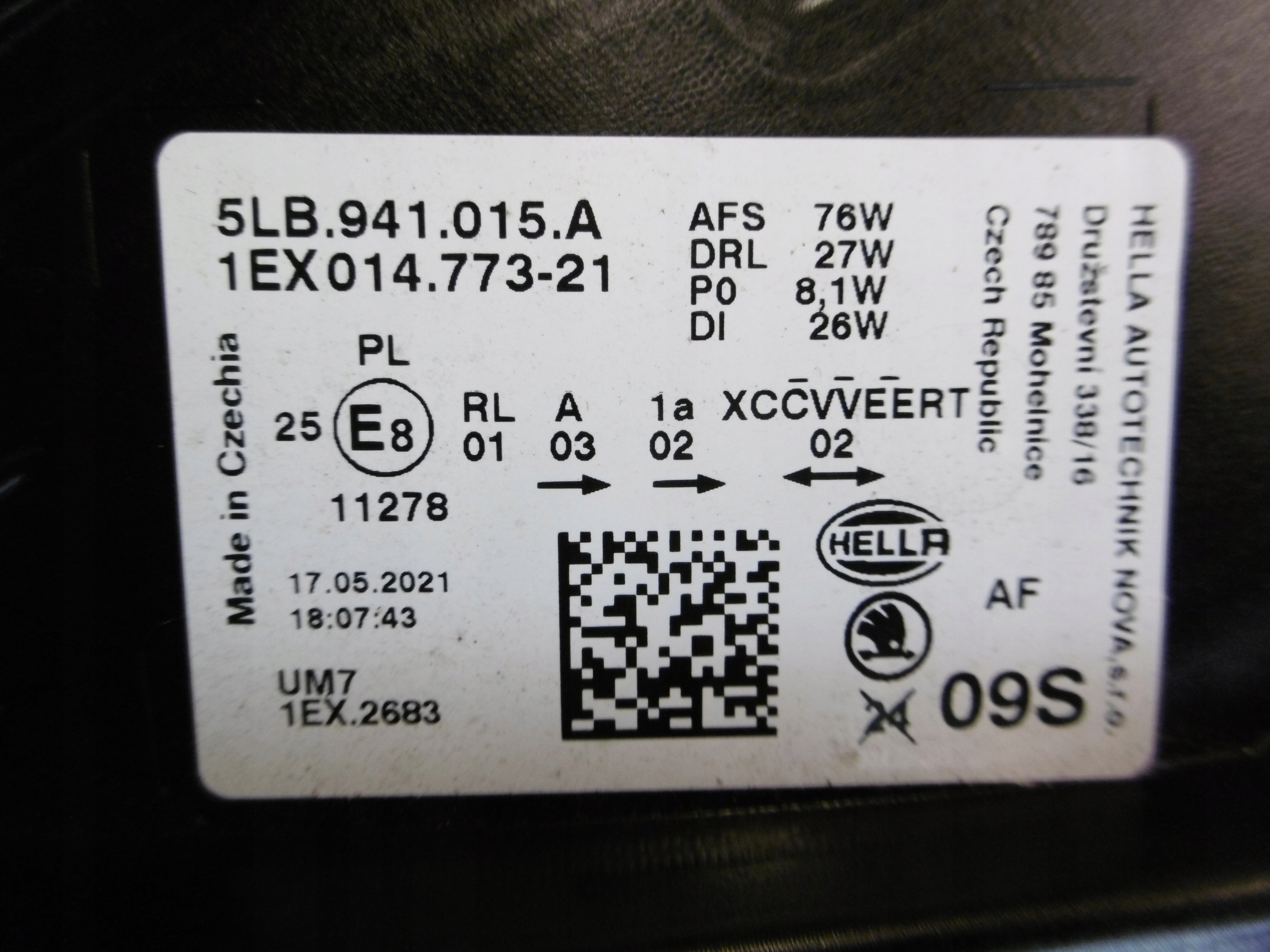Skoda enyaq 5lb full led лампа передня ліва