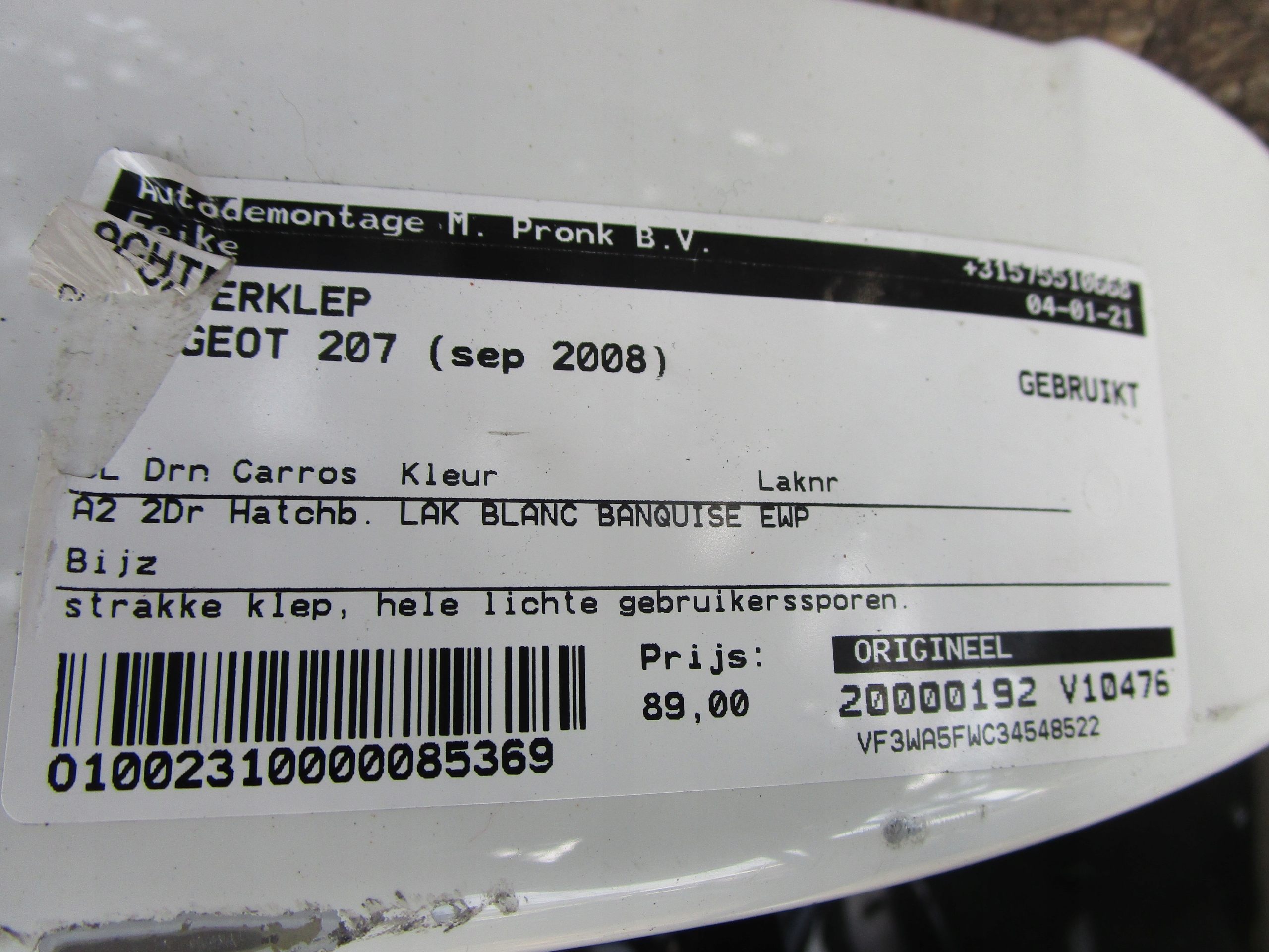 Кришка багажника задня peugeot 207 h-b
