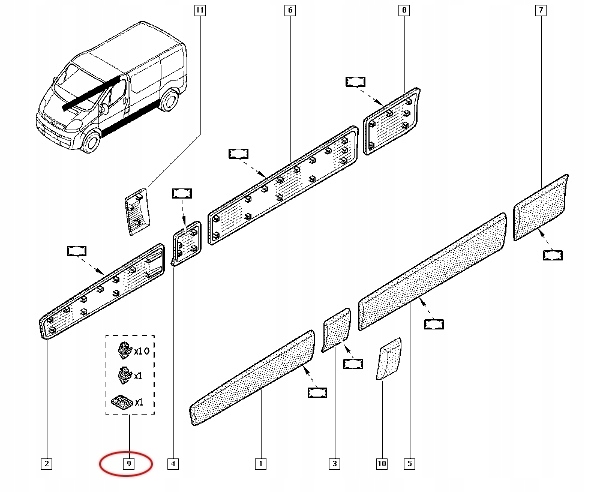 Кліпси накладки бічний renault trafic ii vivaro