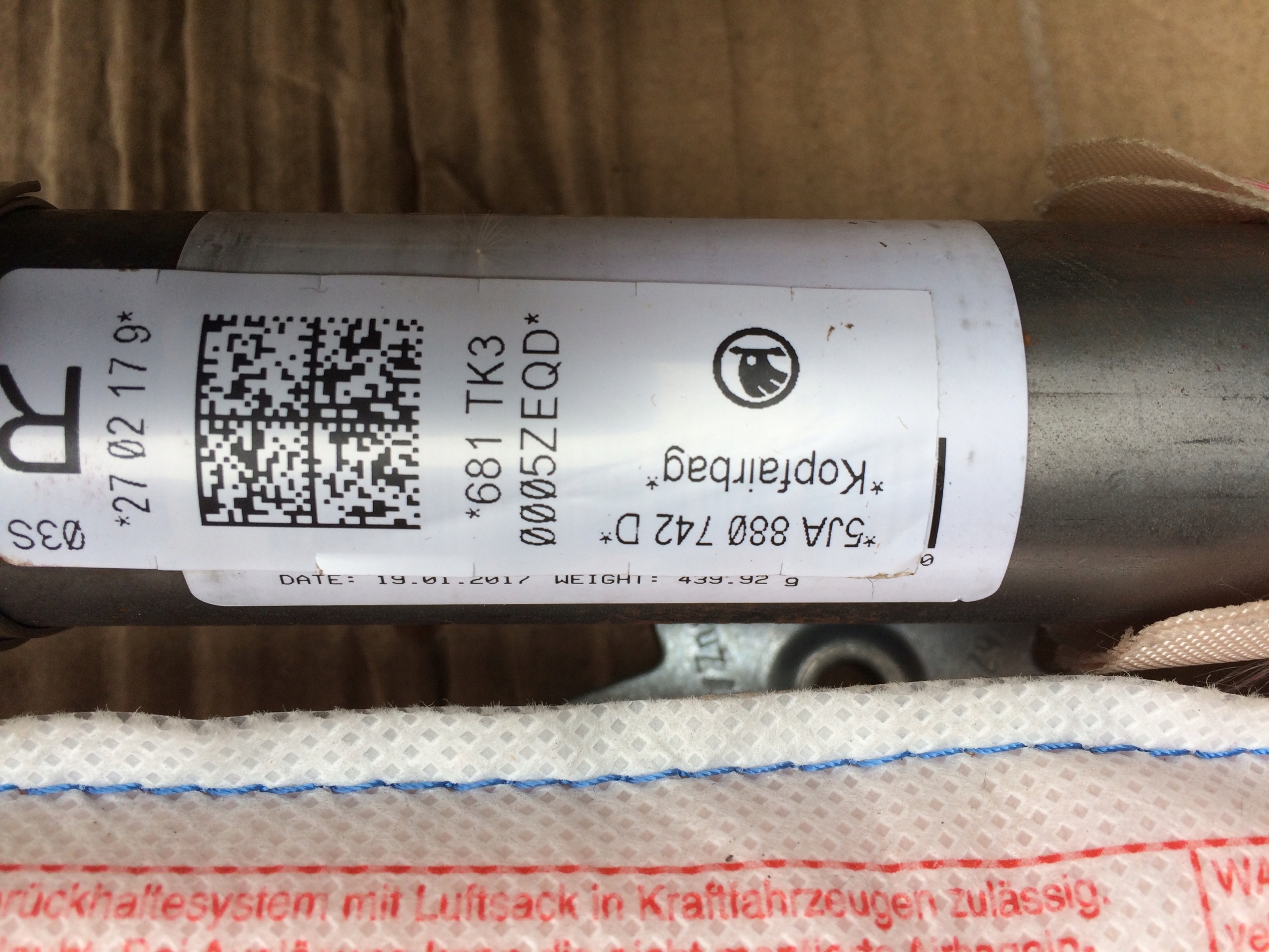 Подушка безпеки шторка безпеки права 5ja880742d skoda rapid