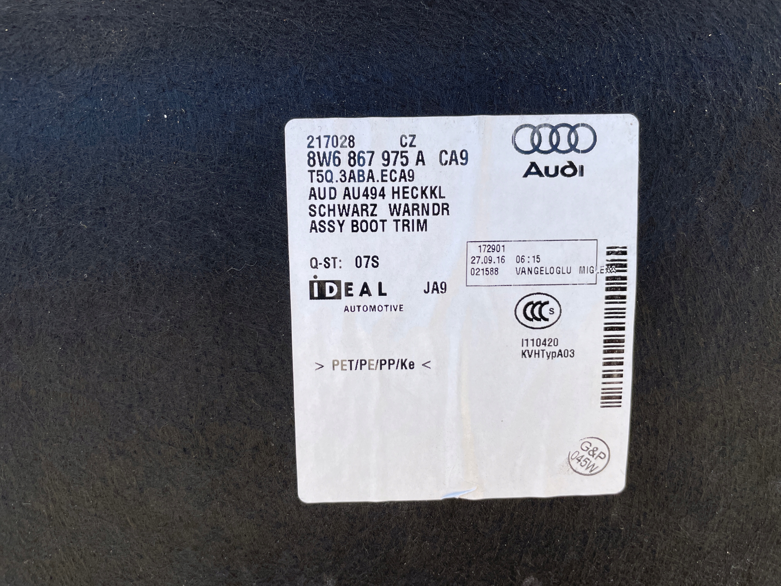 | Каталожний номер деталі: | 8W6867975A, CA9, _auditeile_ |