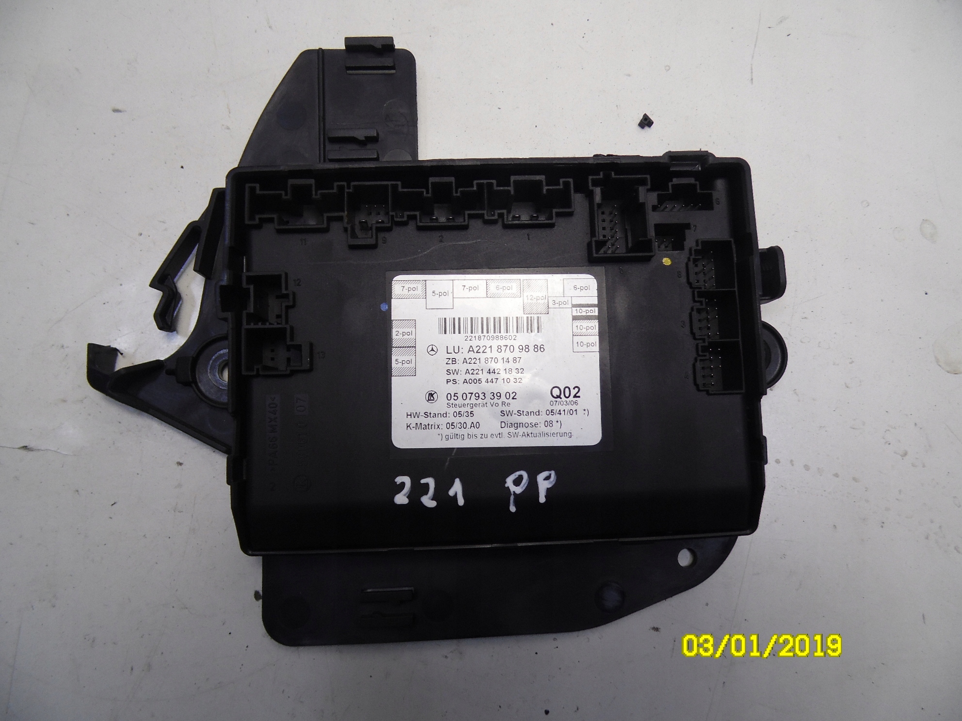 Каталожний номер деталі: MODUŁ DRZWI PRAWY PRZÓD MERCEDES W221 2218709886