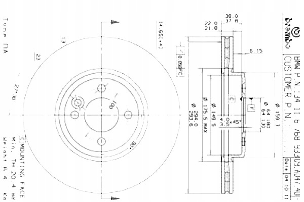 | Каталожний номер деталі: | PRO/09.A047.41, BRE |