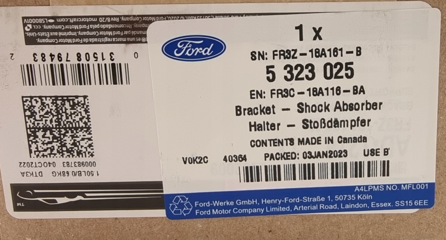 | Оригінальний каталожний номер: | FR3C-18A116-BA, _, 5323025 |