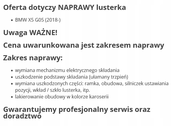 Каталожний номер деталі: BMW X5 G05 NAPRAWA LUSTERKA