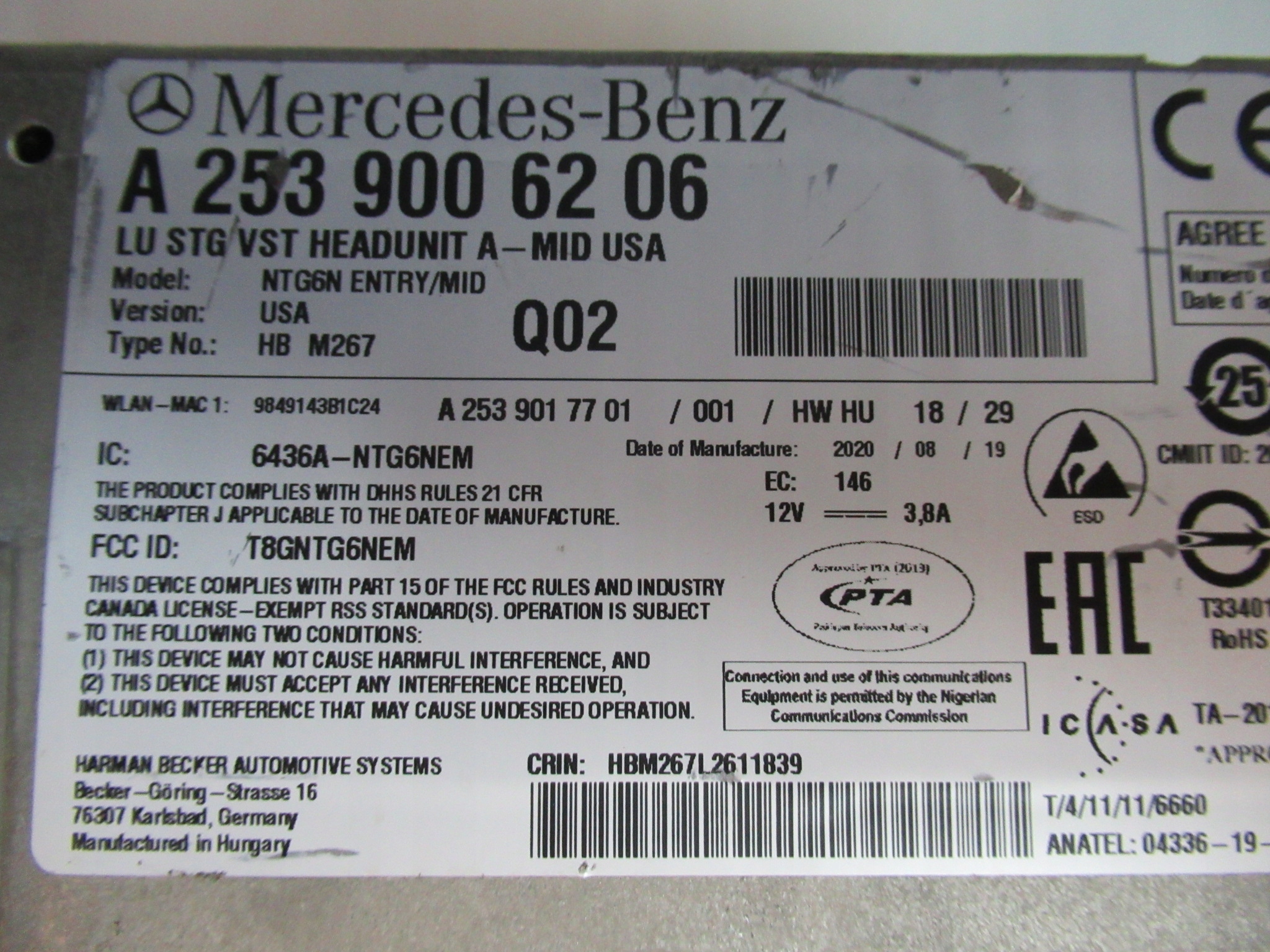 Mercedes навігація ntg6 mid usa a2539006206