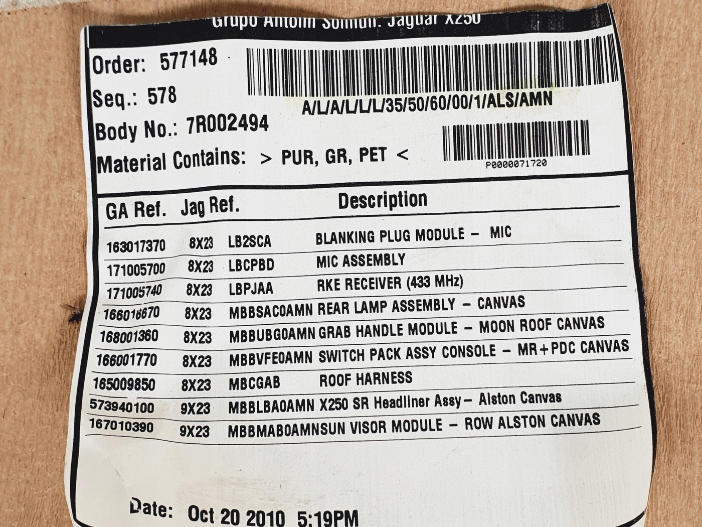 | Якість частини відповідно з gvo: | o - оригінал з logo виробник транспортного засобу оригінальний номер |