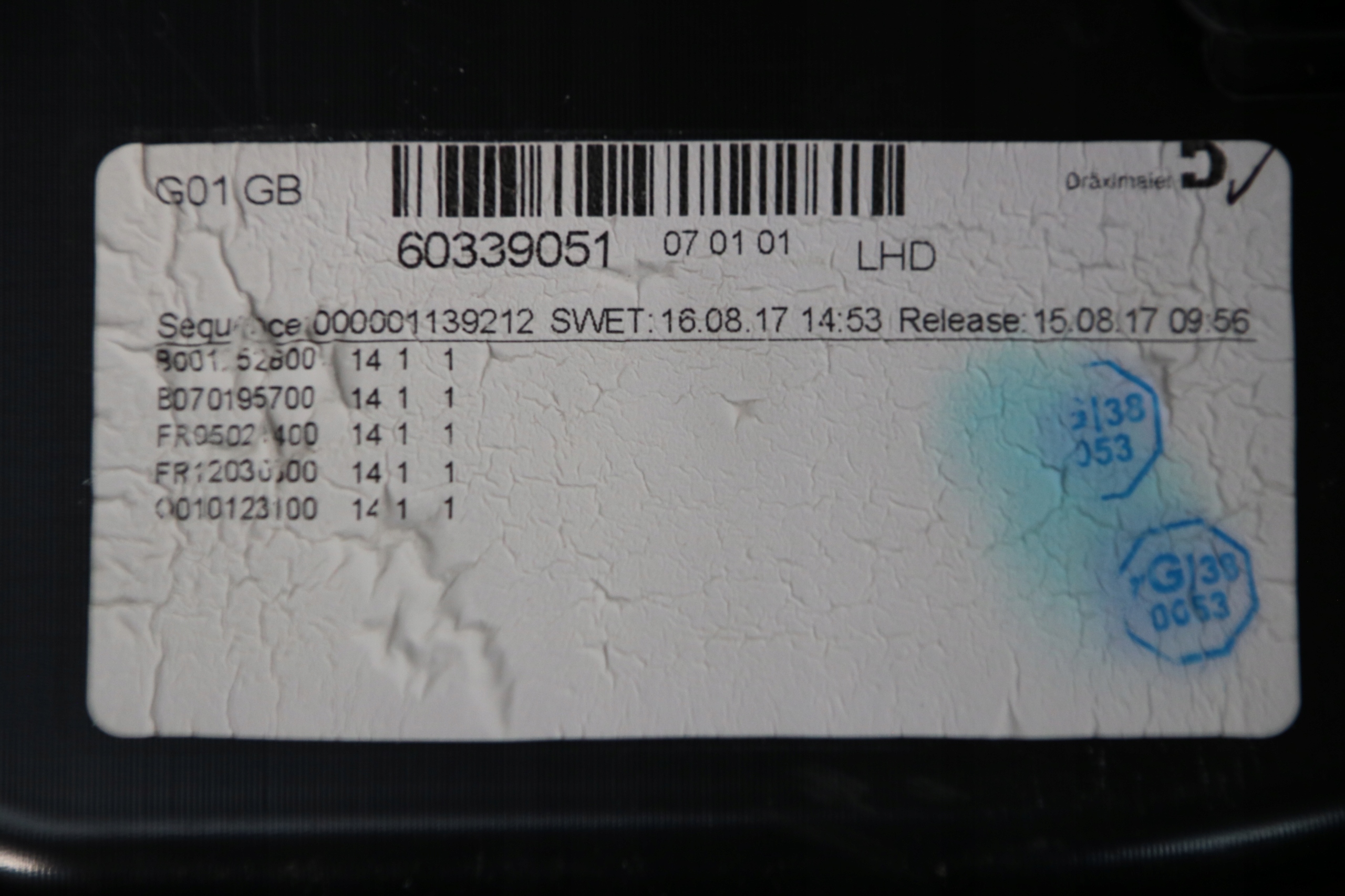 | Якість частини відповідно з gvo: | o - оригінал з logo виробник транспортного засобу оригінальний номер |
