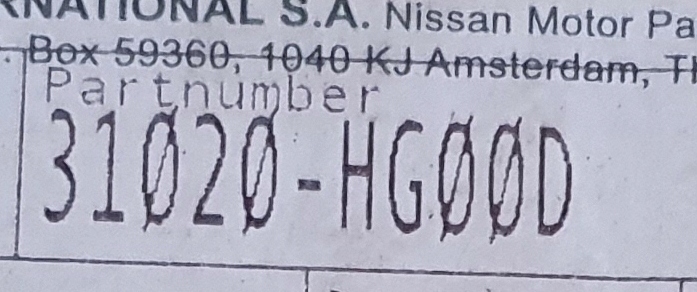Каталожний номер деталі: NISSAN 31020 HG00D