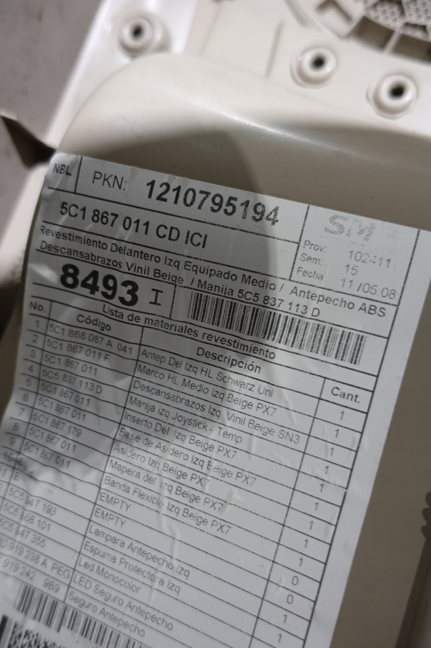 Vw beetle 5c обшивка оббивка двері лівий перед beż