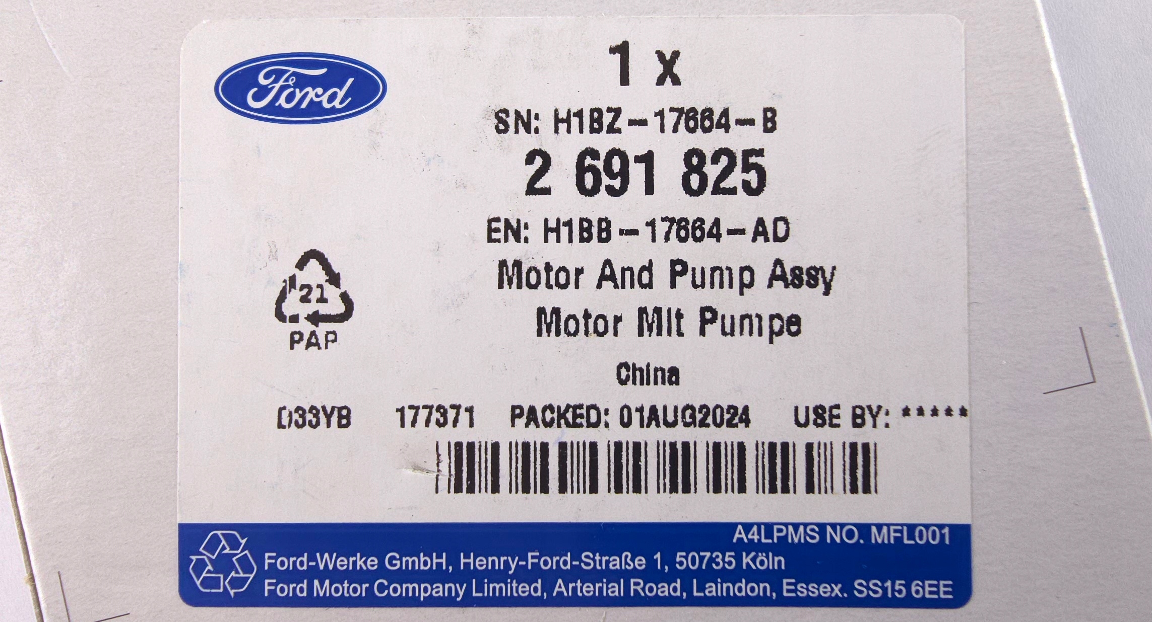 | Каталожний номер деталі: | H1BB-17664-AD |