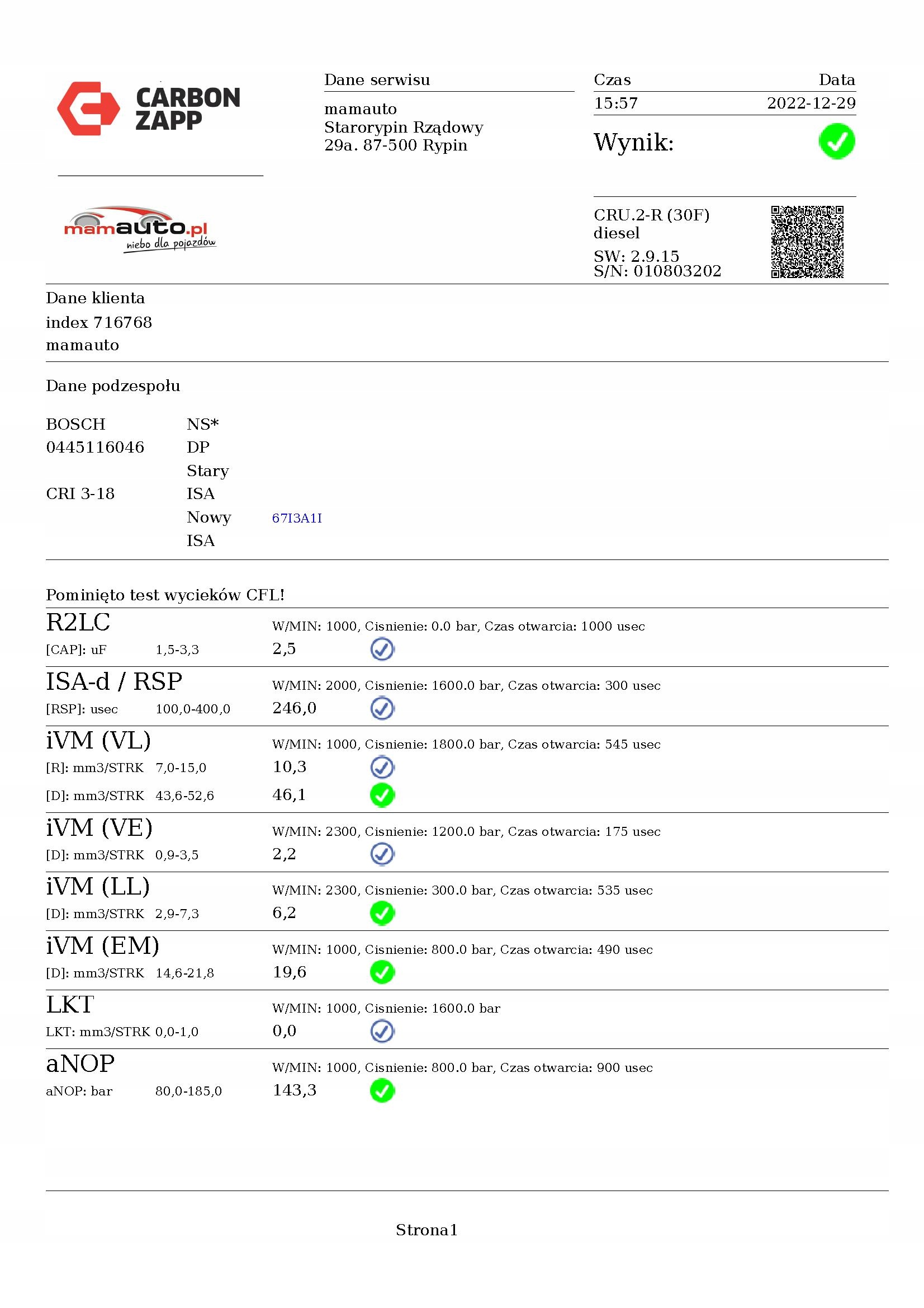 Інжектор форсунка test volvo xc60 1 i 2.0 d3 12r