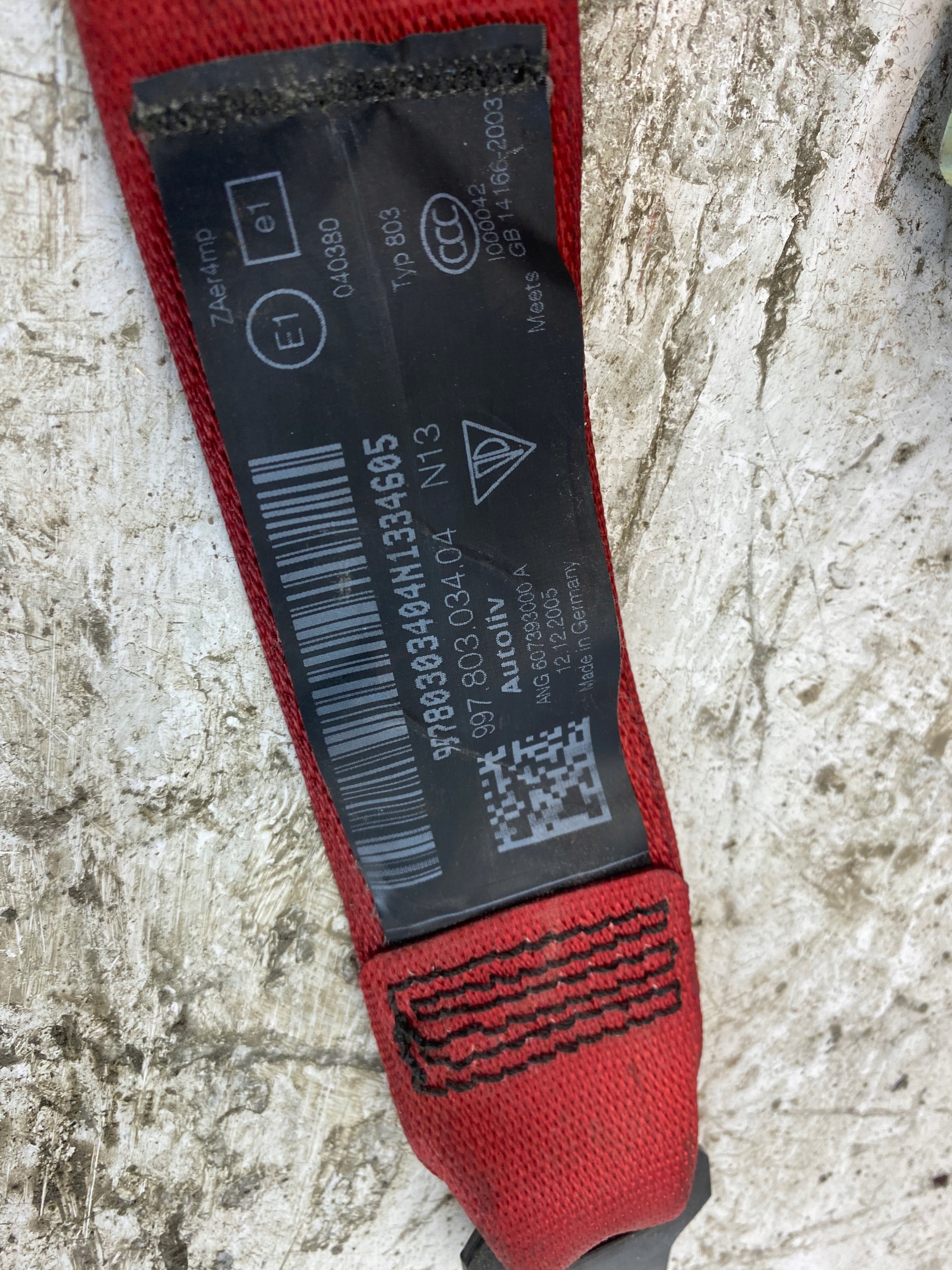 Porsche 997 pas безпеки правий indischrot