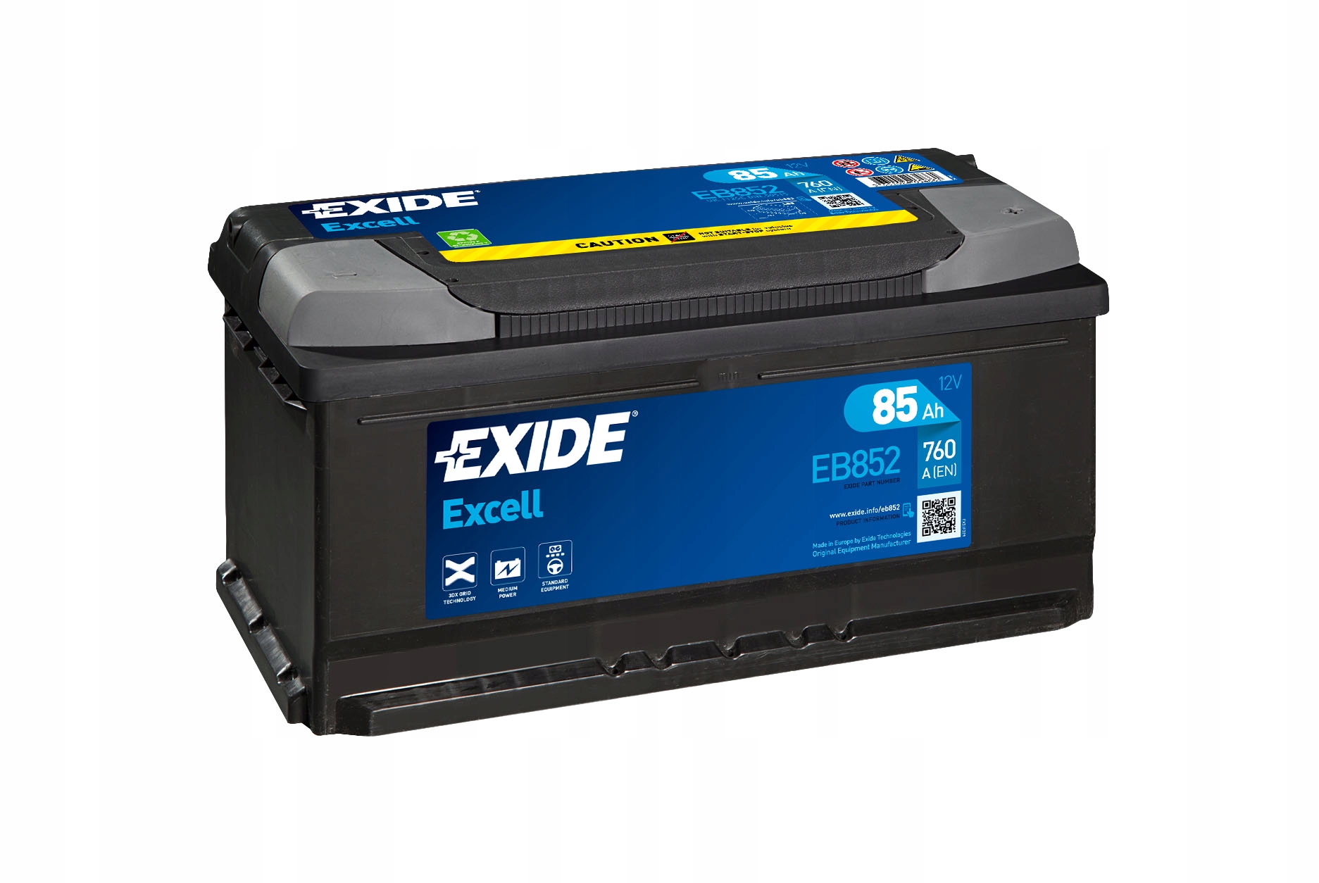 Акумулятор exide excell 12v 85ah 760a p+ eb852