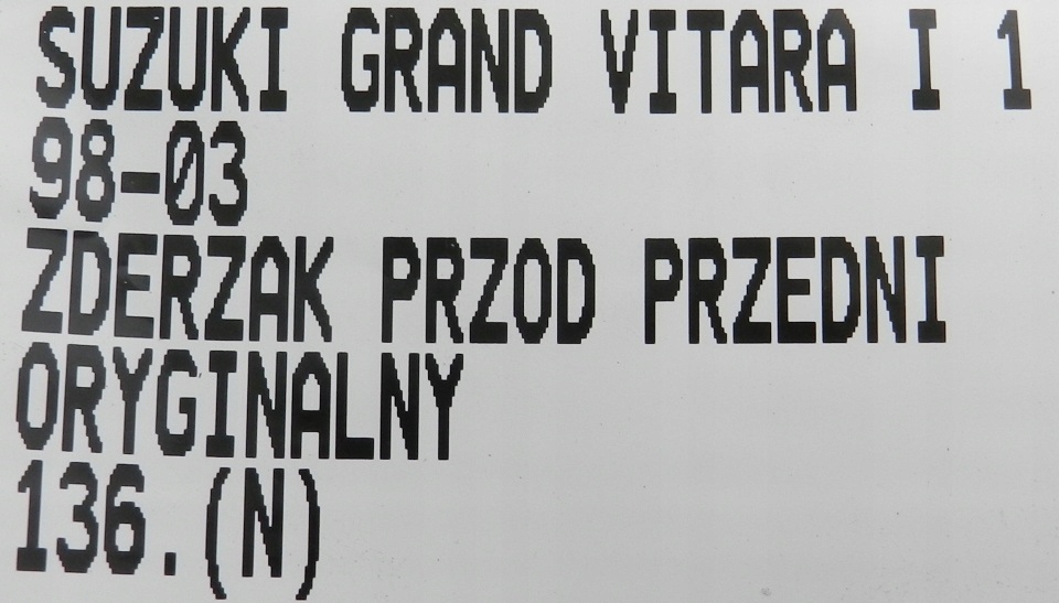 | Каталожний номер деталі: | 136.ZDERZAK, PRZÓD, PRZEDNI, SUZUKI, GRAND, VITARA, I |