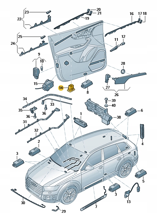 Молдинг двері перед з лампочки audi q7 r8 aso
