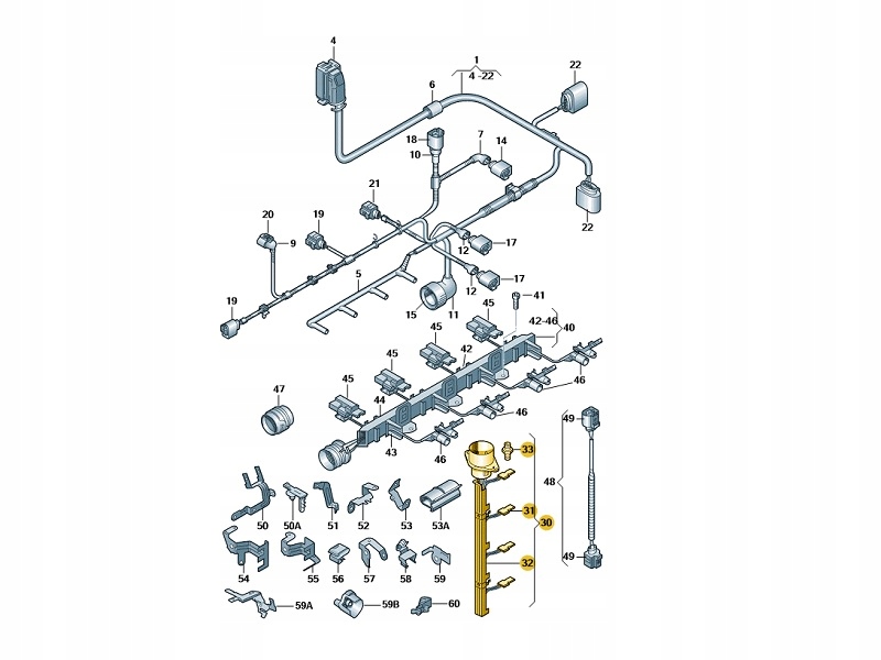 Джгут насос-форсунок skoda vw 1.9 2.0 tdi 8v 038971600