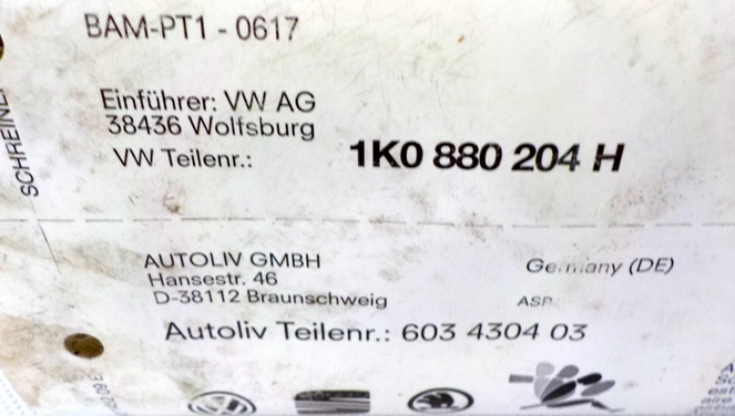 Подушка повітряна audi оригінальний номер 4f1880204f