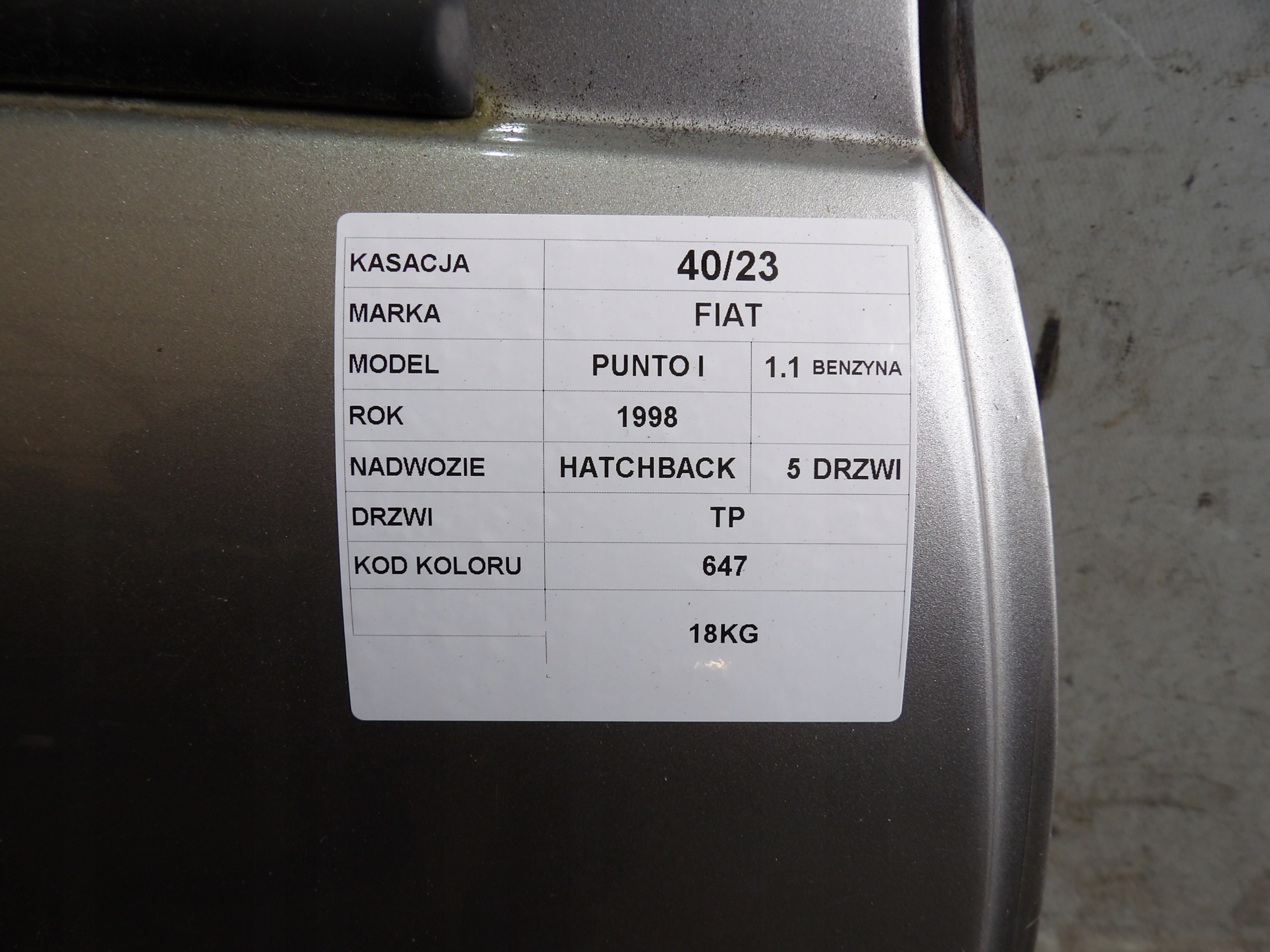 Двері tp fiat punto i lak. 647
