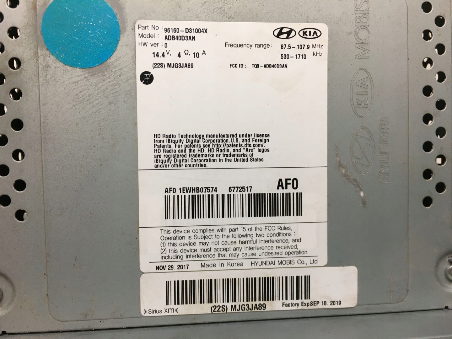Hyundai tucson 15-20 радіо навігація 96160d3100 us