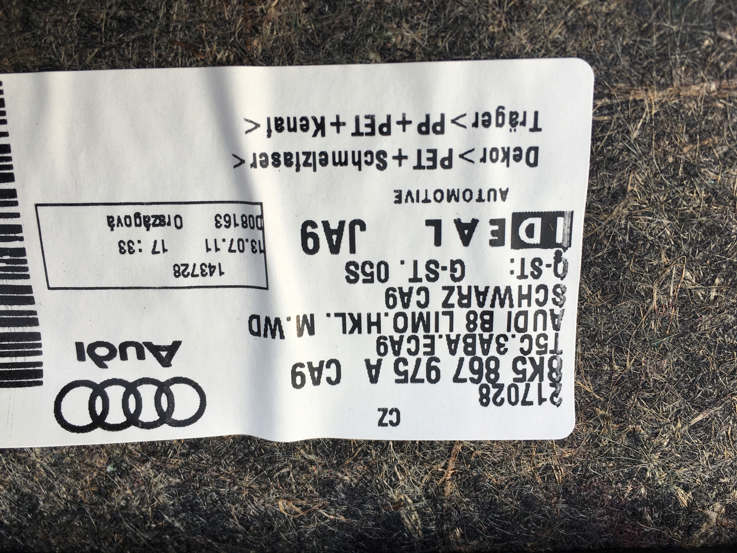 Оббивка кришки багажника audi a4 b8 8k5867975a