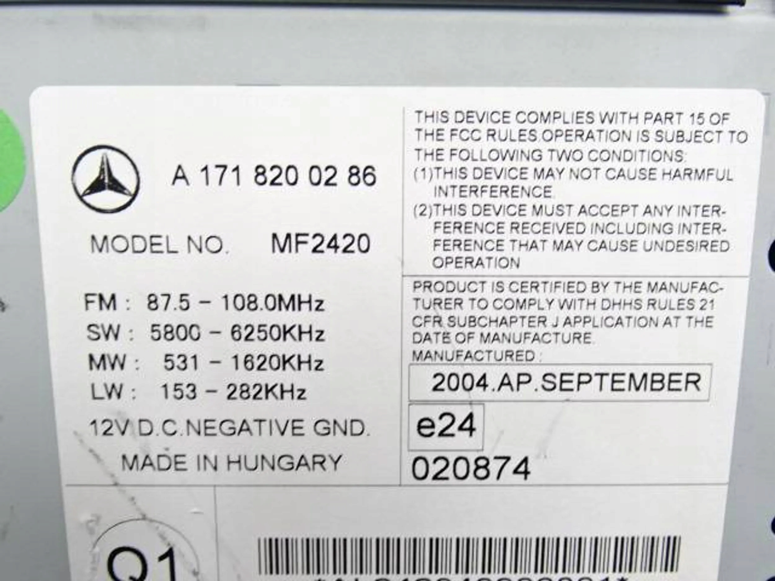 Чи є гарантія на Радіо cd mercedes slk r171?