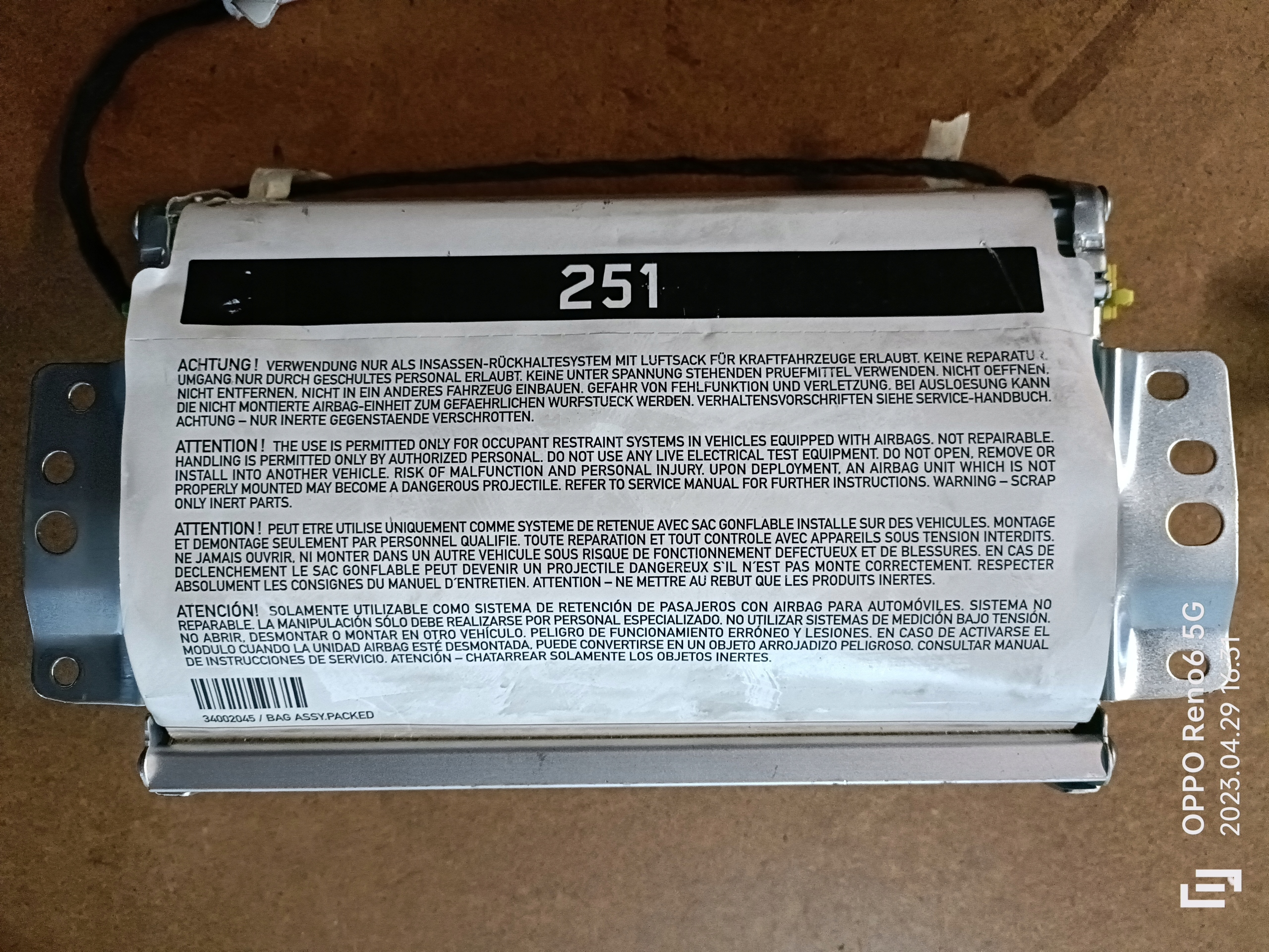 Подушка подушка безпеки пасажира mercedes r w251