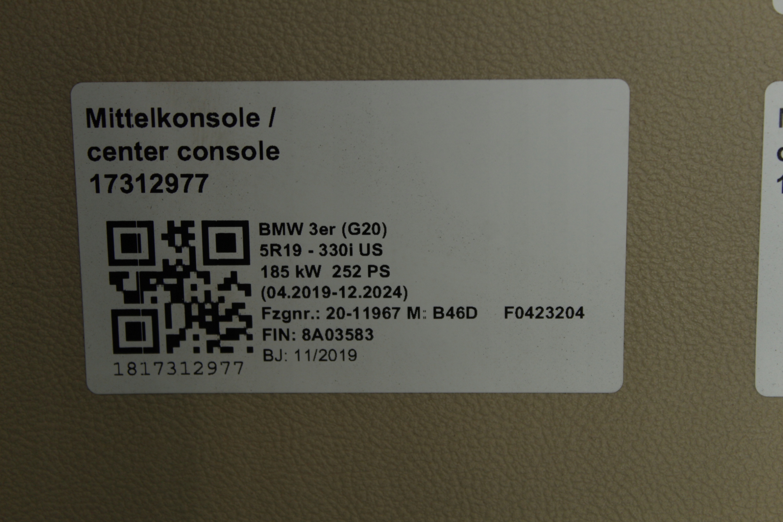 Тунель середній підлокітник canberrabeige bmw g20
