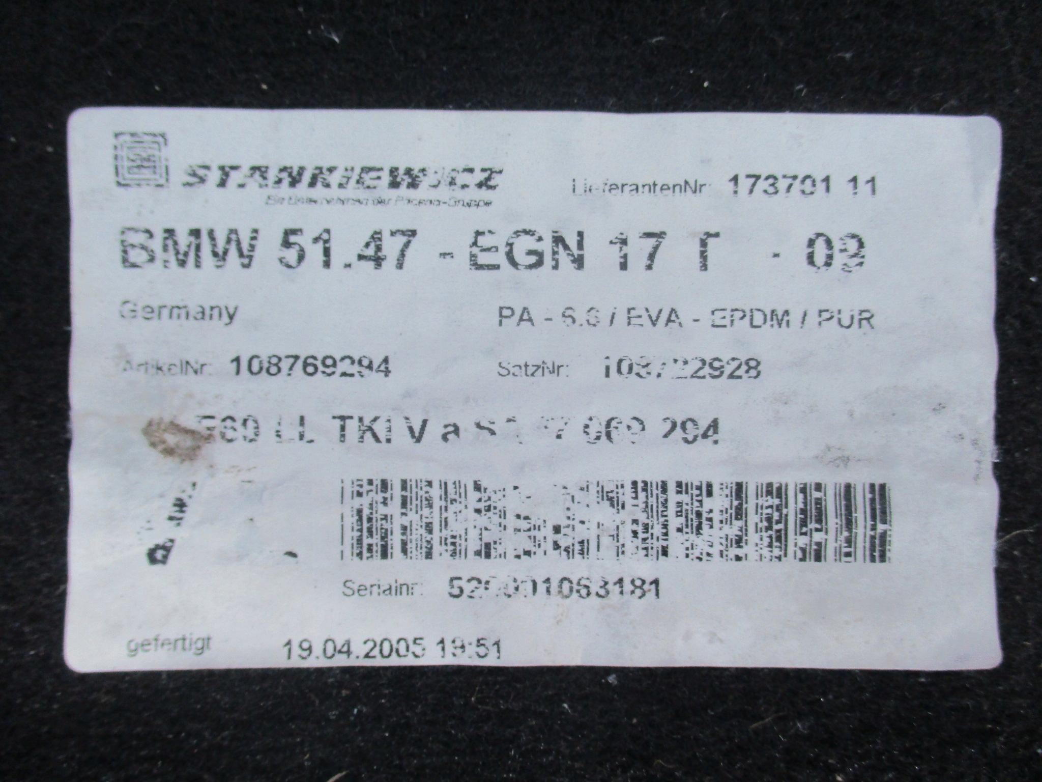Bmw 5 e60 e61 2006r-dywan ,обшивка czarna