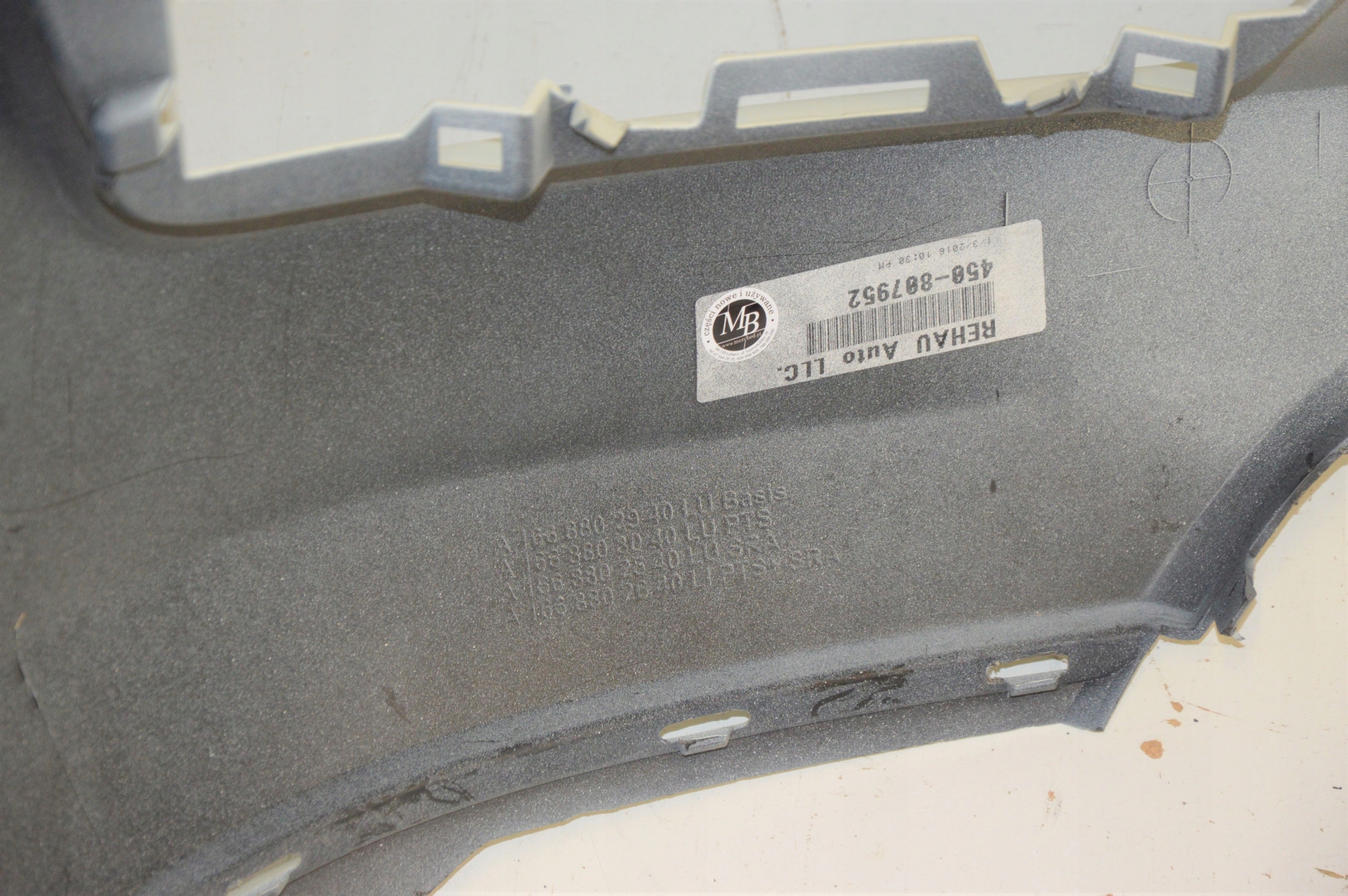 Каталожний номер деталі: A1668802540, MERCEDES, ZDERZAK, PRZEDNI, NA, SPRYSKIWACZE, BIAŁY, 650, GL, 166, X166