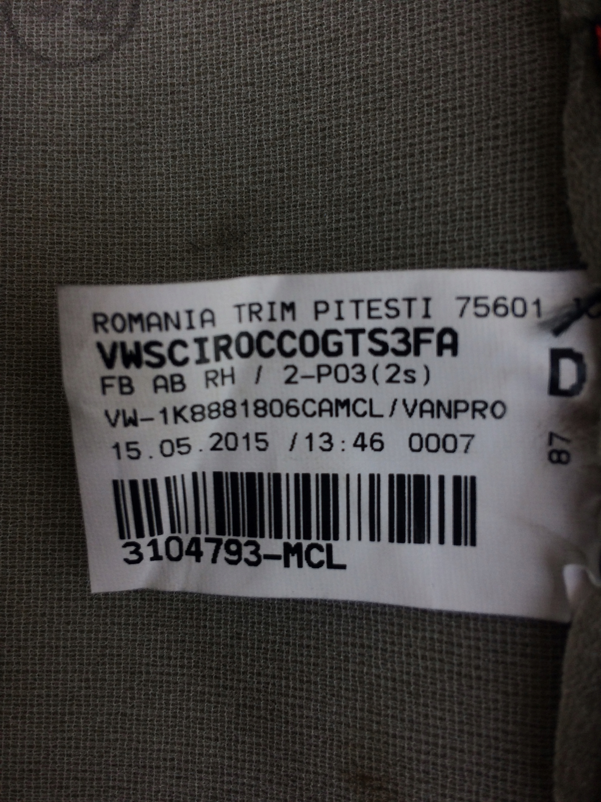Сидіння правий пасажир vw scirocco gts 1k8881806