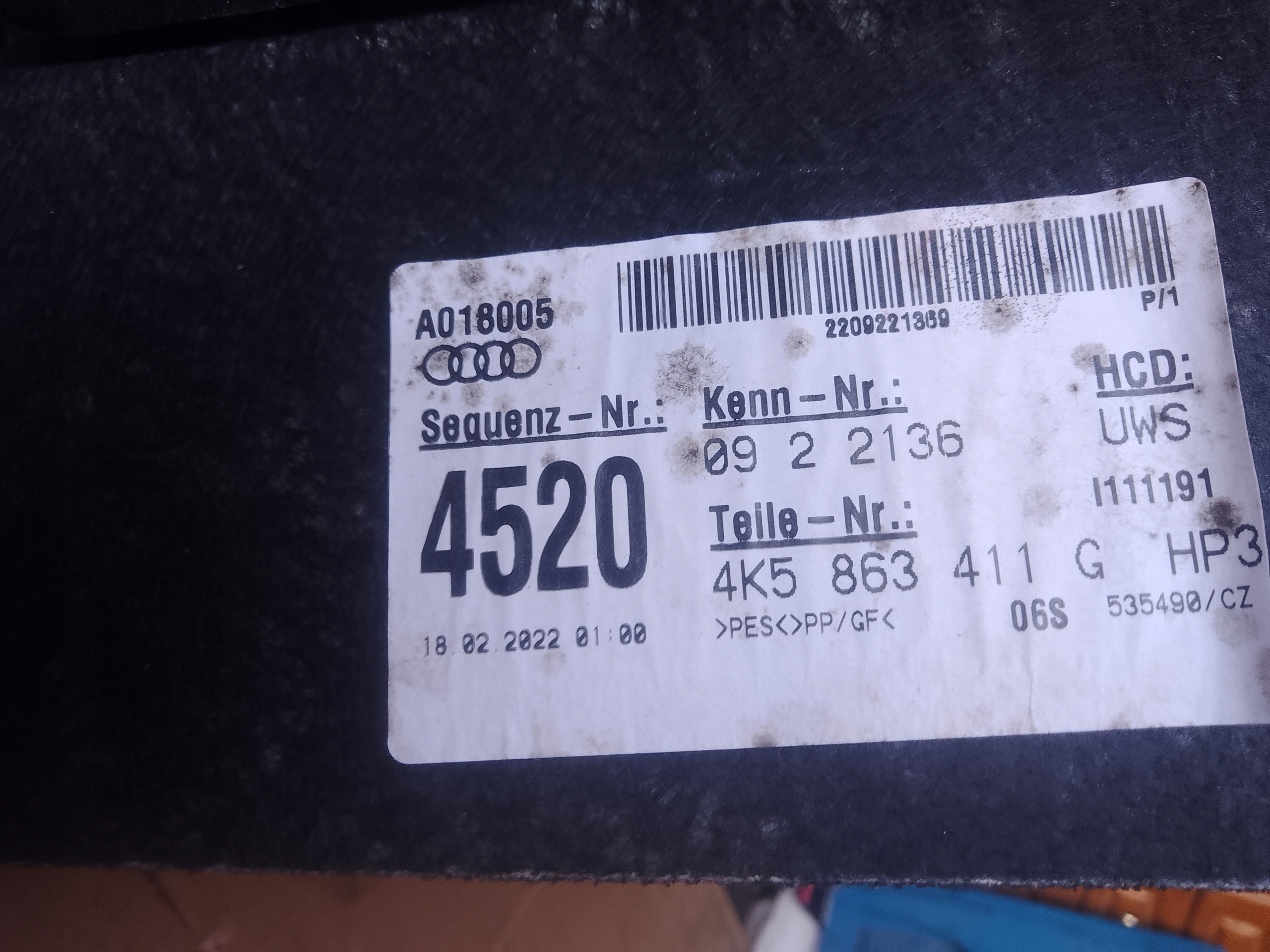 Полиця багажника sedan audi a6 c8 4k5863411g